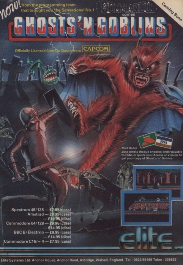 It’s high summer 1987, and after a week away from your beloved Spectrum, you’re faced with the choice of which new game you play first – Ghosts ‘n Goblins or Southern Belle (see previous post). Only ever going to be one winner, especially when you’ve spent the last couple of years reading about a stunning looking arcade game where you fight your way through a graveyard to rescue a princess from The Great Demon Lord himself!
