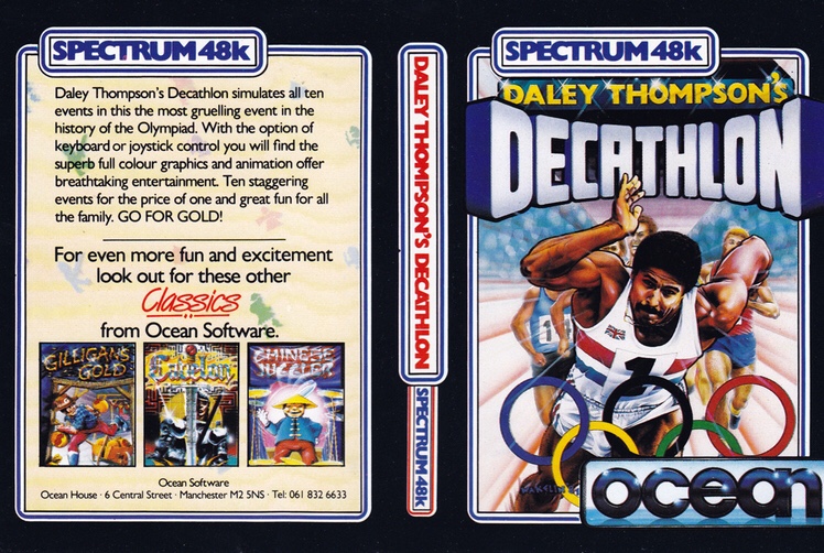 I’m fairly certain that Daley Thompson’s Decathlon was the fourth game I ever played on the ZX Spectrum! My best friend Paul had moved from an Atari 2600, and our days of playing Boxing and the one with the two tanks (Combat?) on their family TV in the living room were replaced in the most part, in my memory at least, by the distinctive sound of Spectrum loading screens in his bedroom, interspersed by actually playing the occasional game! It was the Classic setup – rubber-keyed 48K Spectrum connected to the type of small portable cassette recorder every home had at the time but didn’t belong to anyone in particular, connected to a tiny portable TV and a couple of games; all on the floor.