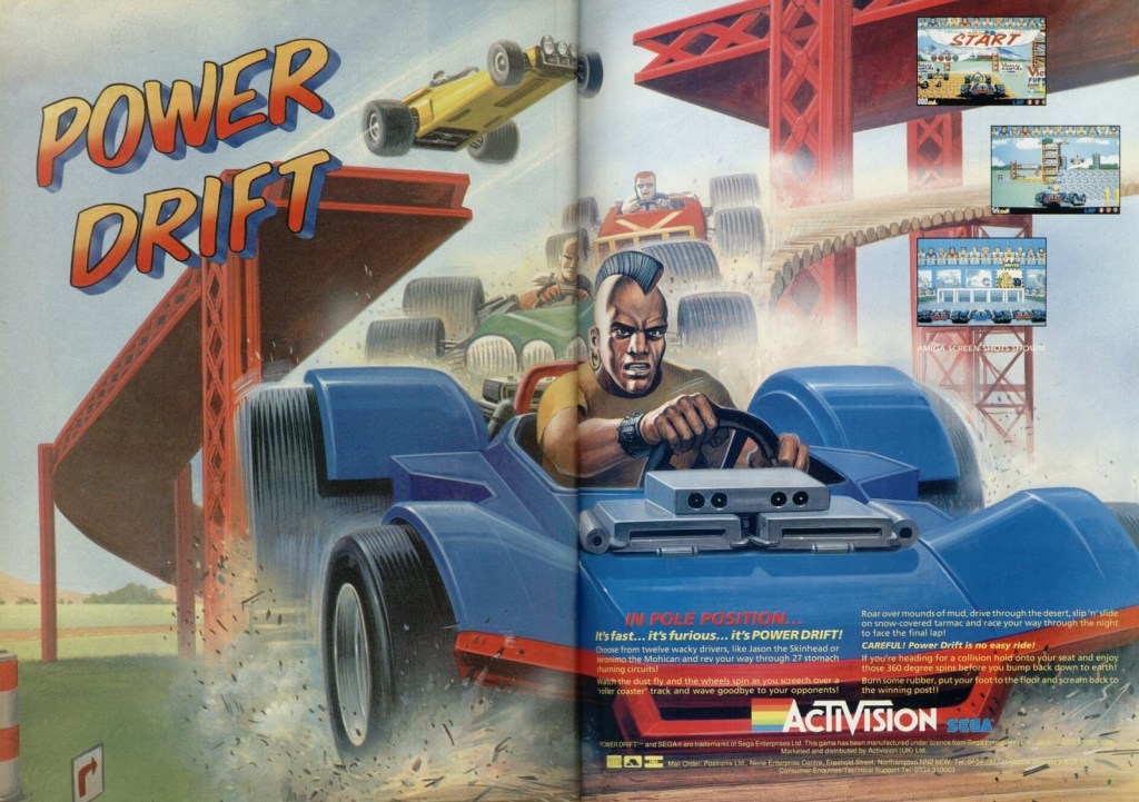Back to Power Drift, after the arcade game was released in 1988 it was ported all over the place the following year to the 8- and 16-bit computers, then the PC Engine and I think the Saturn too. But as was often the case for stuff like this at this time, versions for my old flames the Spectrum and Commodore 64 would be way off my radar for decades to come. Until now!