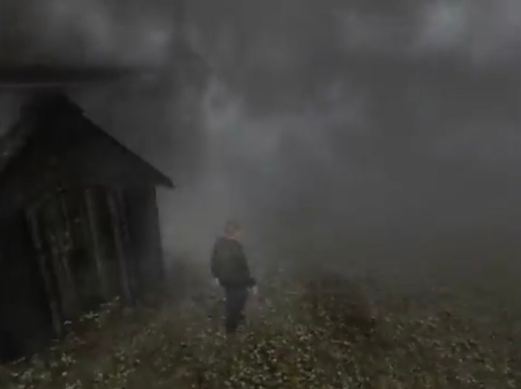 Leaving the toilets and that huge draw-distance panoramic view of the lake with not a hint of technical fog behind, you’re quickly descending into… fog! Actually, beneath your viewpoint up on the observation deck you’ve already noticed the fog swirling around the treetops, but it’s proper fog, and as you start your journey you notice wisps of it all around you, accompanied by an ominous single-chord synth drone. And I don’t think wisps of fog in a game have ever been bettered, nor the descent into ever thickening fog, hiding whatever creature is making those occasional dog-like sounds, and what might have been something falling or breaking or maybe it was footsteps? You can’t see it, but it’s close… And you keep going down and down further into the fog and that ominous synth sound starts to vary a bit and a well emerges. There’s something inside, and you touch it and the screen turns red… And it turns out to be a save point! And you keep going, down into the fog, through the gates that sound like a metal bin-lid being dropped on the floor when they open, and into the graveyard. And even though it won’t be the first time you hear it, it’s in here that you’re probably going to really notice the legendary Silent Hill 2 voice-acting for the first time!