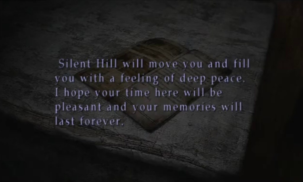 “The name of that town is Silent Hill. Although it is known as a scenic resort area, it is a cursed place where the town’s former inhabitants were once driven away, brutal executions were once carried out, and a mysterious plague was once prevalent. The town is centered around Toluca Lake, from which a thick fog perpetually enshrouds the area and makes vague the reality and dreams of those who visit the town. And according to those who have seen them, there are also times when “things” that should not naturally exist appear.” Not my words, but a near-enough translation from the Japanese-only Lost Memories: Silent Hill Chronicle that was on the back of their Silent Hill 3 official game guide in 2003.