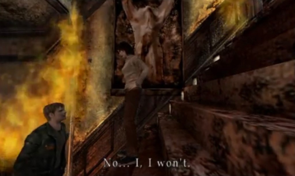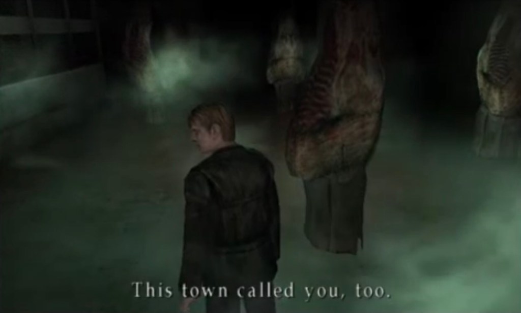 Now let’s move on to my very amateur conclusion about what’s going on. Whatever happened to the town of Silent Hill for it to end up like it is, it’s now a pull for messed up people with messed-up pasts, and is populated by their own very personal monsters. The question is, are the other people you come across in Silent Hill there because they’re messed up like you, or because you are? Like the monsters, I reckon the town made them just for you… Eddie eventually represents James’ disgust at killing a human, charatecterised by his remorse after the meat-locker encounter. Maria is the dying wife manifested as the perfect wife she couldn’t be, back to mentally punish James forever through witnessing recurrent violent deaths at the hands of Pyramid Head, who, like most of the game’s other monsters, is a manifestation of James’ repressed but increasingly violent sexuality coming from years of sexual frustration at the hands of disease. Angela is James’ acceptance that he deserves what he’s going through, of his guilt and not being worthy to live anymore, albeit in reverse as the abused and not the abuser – her father, your wife, just different sides of the same coin; the guilt is the same. And then there’s Laura. She’s not so messed-up and so the town isn’t dangerous to her; she’s not seeing what “everyone else” is seeing. She’s James’ guide towards the truth – if she hadn’t kicked that key away from him in the early game, where would he have gone next? So I think that unlike the other characters you meet, she is real and is in Silent Hill to find her friend – your dead wife – just like you are, but without the horrors of the past to cloud (fog) the way to the end-game… The guilt of being a sexually deviant murderer that demands punishment at your own hands is a horror that is yours alone.