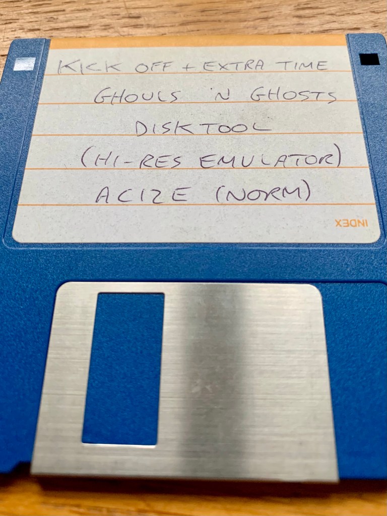 The next little mystery is where this copy of Kick Off (or Kick Off: Extra Time to be precise) came from. Most of my ill-gotten Atari ST gains were from the aforementioned school-friend Thomas, but neither him nor his cronies would have ever bought a copy of a football game – way too distant from Dungeons & Dragons! Ghouls ‘n Ghosts isn’t giving me much of a clue either, apart from dating it from the end of 1989 onwards! The other stuff written on the disk also isn’t helping much – Disktool (ahem!) then “(Hi Res Emulator)” and “Acize (Norm)” appear to be lost to the mists of time. And it’s all in my handwriting, meaning I probably copied it, though it can only have been from another copy because until I was looking up stuff just now, I don’t think I’d ever laid eyes on the boxes for ST Kick Off or Ghouls ‘n Ghosts. By the way, I’m not going into it here, but that version of Ghouls ‘n Ghosts is superb! You can’t get turned into an old man, and the incredible rain effects in the arcade version are definitely toned down here, but otherwise it’s a great way to run about in your pants chucking daggers at some great-looking undead, as they mercilessly and brutally team you how to play the old-school way!