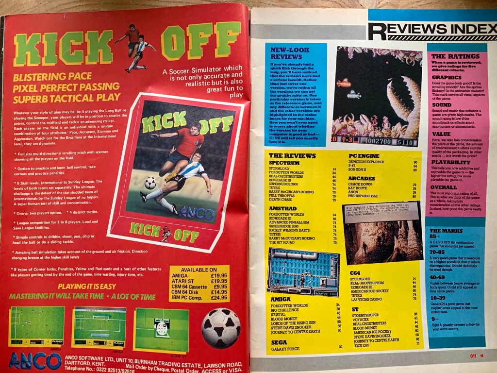 Thinking about it, maybe nothing else is memorable when you consider the arrival of Kick Off in the summer of 1989! “Best computer game ever” said Amiga User International. “Probably the best sports game ever” said The Games Machine. And so on. My own beloved Computer & Video Games magazine lauded its realism, if not its graphical thrills, and called it the best ST footie game yet… But as we’ve already discovered, that’s not such high praise, and the 84% it scored also possibly wasn’t the high praise that demanded I rush out and get a copy when there was stuff like Dungeon Master (more here), Defender of the Crown and Ghouls ‘n Ghosts to grab my attention… If not necessarily my cash!