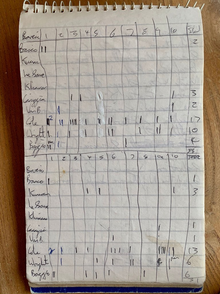 On top of years’ worth of mirroring actual football competitions, every player in my team had a name, from David Seaman in goal to Roberto Baggio wherever he fancied playing. Same team regardless of domestic or international – my fantasy game, my rules! And every player was rated at the end of each match, and had their goal tally recorded, and imaginary awards were given at the end of every season! Andy Cole and Ian Wright were generally the top goal scorers, but Marco Van Basten was usually voted best player on the planet. My brother Phil’s team all had names too, and we spent hours and hours and hundreds or thousands of matches playing against each other for bragging rights that lasted until the next final whistle, relentlessly abusing each other’s players (by name), and often resorting to local bedroom football hooliganism when the ref made an outrageous decision or there was a particularly vicious slide tackle that could have put an end to your player of the year!