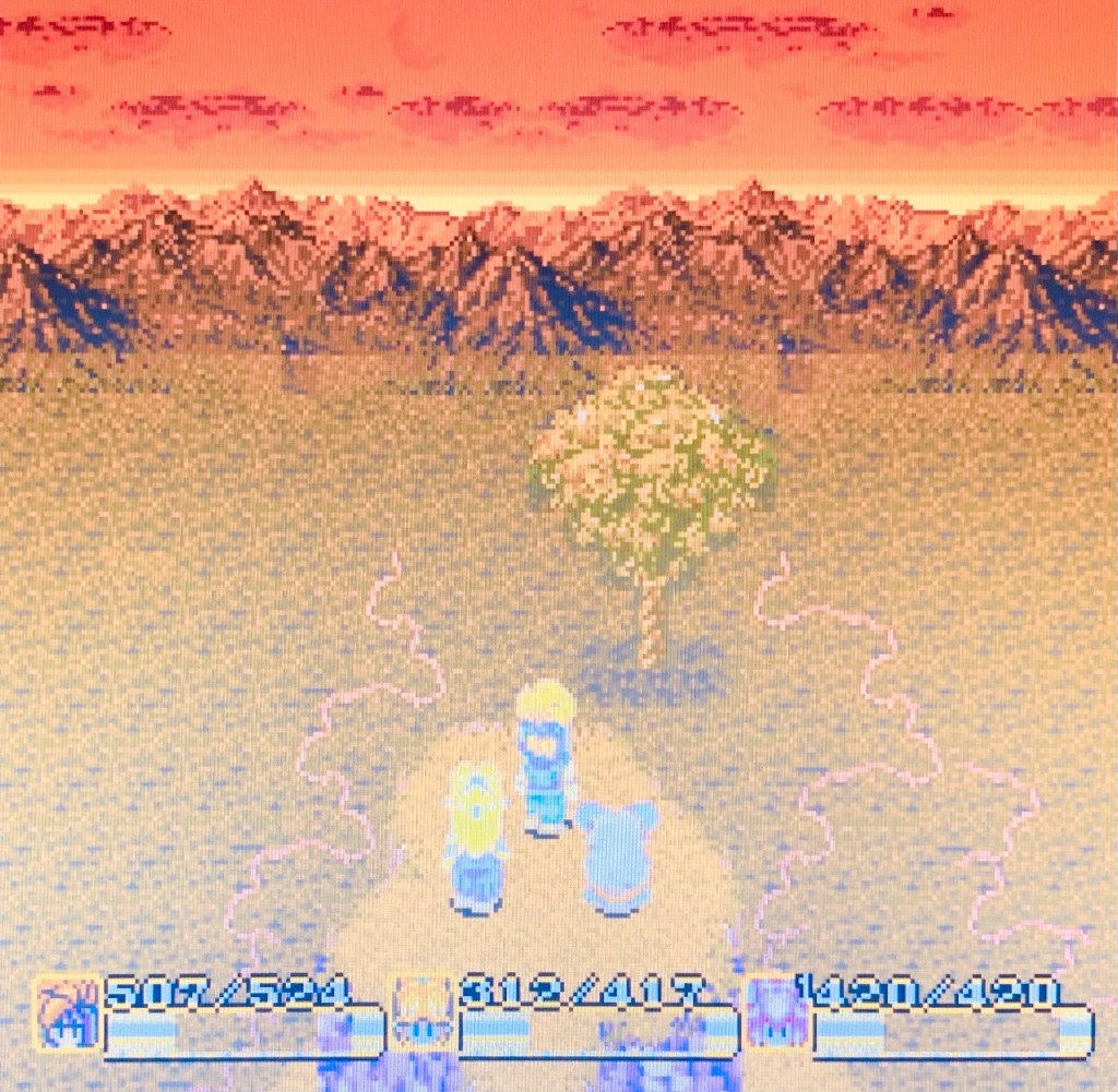 It might be the art style that got me with Secret of Mana. It’s an absolutely stunning example of 16-bit pixel art, and I’m a big fan of that, whether original or contemporary. There’s many times where you’ll enter a new kind of forest or desert or village, see some nice glistening snow effects as you walk through seasons, or just find a room in a castle full of stained-glass windows, and you’ll have this sense of wonder, like you’re being transported right back to the early nineties when it was as new and astounding as grunge music or that scene in Basic Instinct also was! And the variety of environments is so huge that this will happen over and over again! There’s this big sense of the characters actually being an active ingredient in those environments too – the animation is simple in modern parlance, but combined with the distinctive pixel-art character (playable or otherwise) designs, you feel like they’re there!