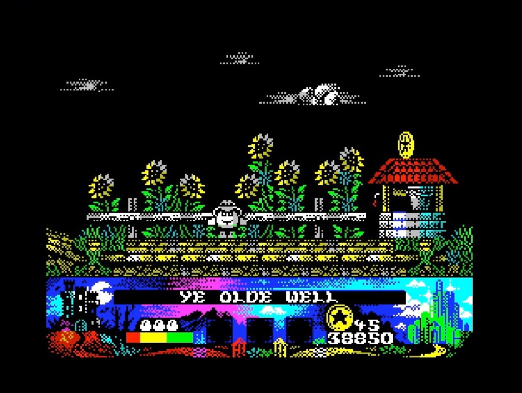 Speaking of better than ever, I can’t not talk about how Wonderful Dizzy looks for any longer! Off the top of my head, if we’re talking best-looking games on the Spectrum, you’ve got Trap Door, Exolon, R-Type, maybe Head Over Heels, definitely either of the first two screens in Olli & Lissa: The Ghost of Shilmoore Castle… And now we have to add Wonderful Dizzy to that list – it really is that good, to the point that when I first saw it, I assumed it was actually a Spectrum Next game, but no, it’s proper unsullied 128K Spectrum. It even embraces the colour clash, which is one of many knowing nods to old-school gaming you’ll come across! The amount of detail in every aspect of every screen is incredible, as is the way Dizzy moves around the world – not only in his animation, but also the way he physically belongs in it, and I really don’t want to be specific here because these deserve to be noticed fresh!