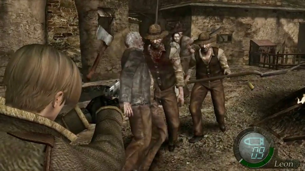Big gate ahead signifies a checkpoint and we’re in the village and there’s tons of angry villagers with a dead look in their eyes, and you know perfectly well that for all the creeping around you do at the start, you’re in for the most hellish fight you’ve ever been in – just because of these awful controls! Eventually you’re trapped in a house, and it goes all Night of the Living Dead with you trying to block up windows while you try and shoot and stab (good luck!) your way to some kind of safety upstairs, where they’re also now coming in through the windows on ladders! Somehow you get by and get out of one of them, and just start running frantically – at least you’re getting used to how that works now, even if you can’t shoot anything! And then the guy with the chainsaw and the bag on his head appears with a load more psycho-villages, and you can keep running but you can’t hide and eventually – more checkpoint restarts later – you concede that you’re going to have to get some tactics down for a scrap, but at least by now you’re starting to get used to shooting stuff, and eventually you’re starting to appreciate the incredible tension of being stuck in that house with loads of stuff coming through windows, or coming up against Dr Salvadore, the chainsaw guy, because now you’ve got a chance.