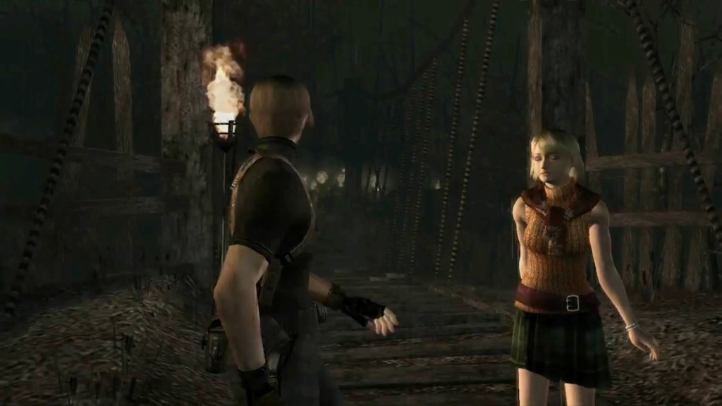 After a bit more killing (zombie wolves not dogs for a change!) and a bit of classic Resident Evil item collection and puzzle-solving, it’s around here that we’re going to find Ashley, the President’s daughter, and oh no, next disappointment, she’s coming with us and it’s not only going to be dreadful escort missions, but she’s a 20-year old American girl that acts like a 15-year old American girl! Actually, neither turns out to be so bad, and for a mostly non-playable character from 2005, she even displays a modicum of intelligence and tactical nouse in combat! Anyway, I was going to say, this is probably a good point to expand on the plot, because it’s now clear that there’s more to all of this than just finding your newly un-kidnapped sidekick!