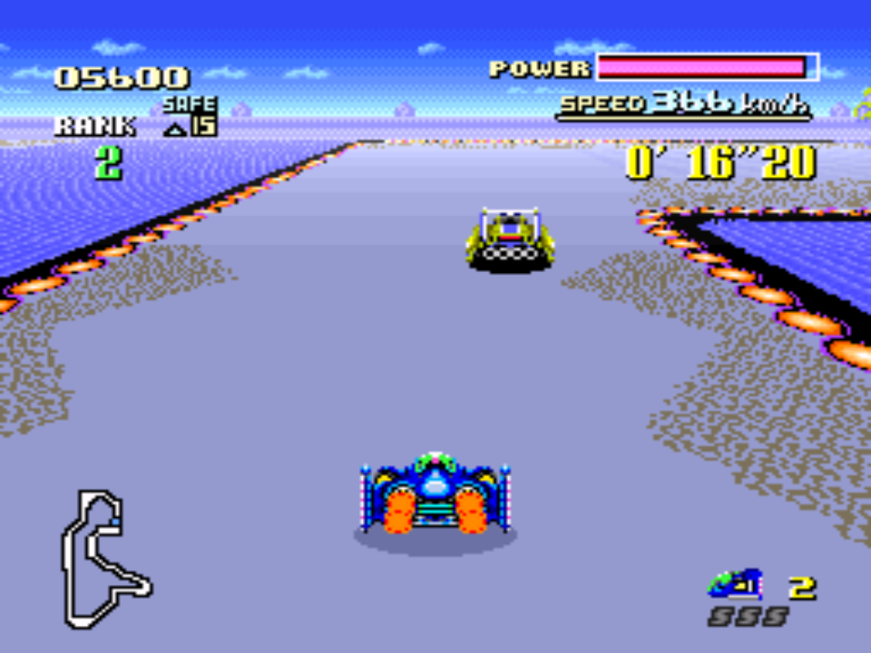 It doesn’t take long for you to get to the original F-Zero Big Blue theme. You’ll know it because for a second you’ll think you’ve reached the final boss on some insane bullet-hell shooter instead of beginner track number two! I often think this course was all about showing off colour on the SNES, and I reckon composers Yumiko Kanki and Naoto Ishida wanted to deliver the the audio equivalent with this. Electronic drama, an impossible bass-line and enough melody for a dozen bonkers eighties cartoon soundtracks!