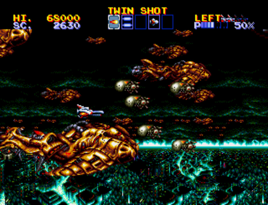 I love the Thunder Force games – gorgeous multi- or just side-scrolling, weapon-switching space shooters that I think I’ve mostly experienced backwards, from Thunder Force V on PlayStation to IV then III on Mega Drive to AC (an arcade port of III) on Switch, then most recently Thunder Force II back on the Mega Drive! It’s a toss up betwen IV and AC as to where my favourite lies, possibly for no other reason that I’ve played them both the most – along with Road Rash II, they are both my regular football half-time games depending on which room I’m watching it in! Thunder Force IV is an absolute stunner, with some incredible parallax scrolling, but in reality doesn’t add much in gameplay terms, and that’s absolutely okay!