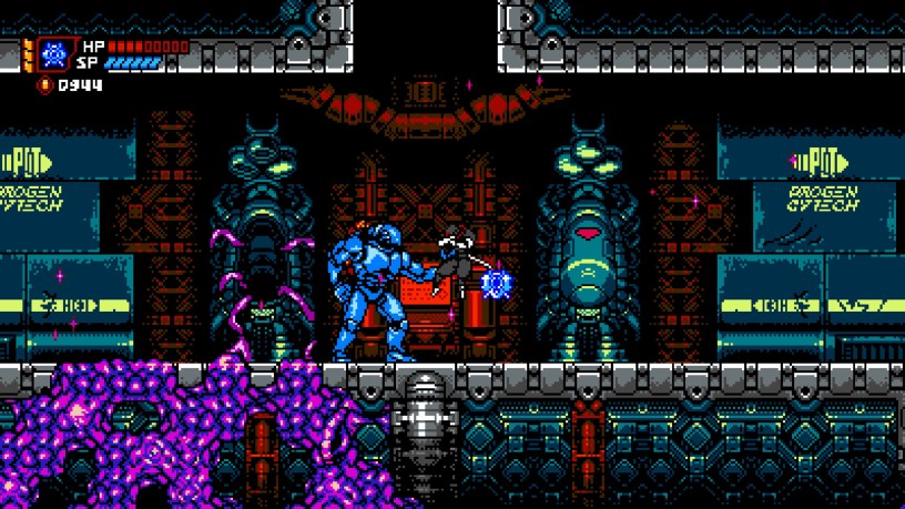 The plot begins perfectly lightweight and off-the-wall, with your cyborg ninja exploring the far-distant future of Mekacity to rescue his fallen clan, whose mystical powers are being harvested by nasty synthetic lifeforms. That translates to you fighting your way through ten chapters of varied sci-fi environments in and around the city as the story of the mad scientist, his robot army and your place in everything evolves into something a little more complex, and for better or worse, a lot more so than you’d find in Mega Man!