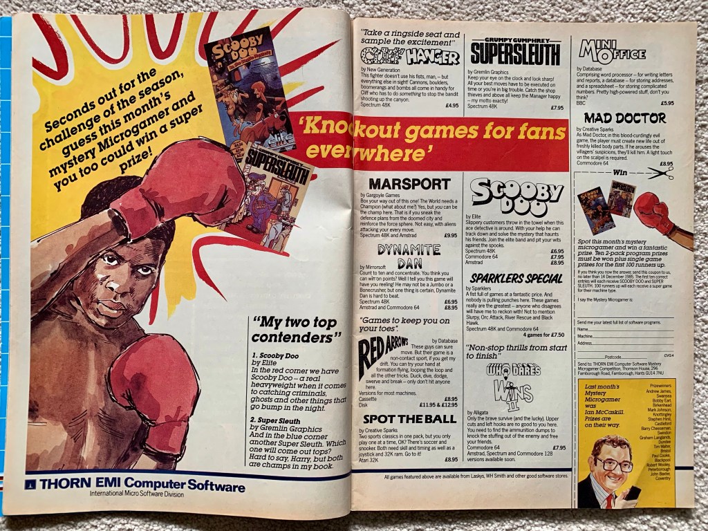Speaking of top tens, I’d rank Scooby Doo, Where Are You! at number three in my top ten TV shows ever, after Bottom and Miami Vice. Also note I’m being specific about “Where Are You!” just to avoid any association with later abominations involving Scrappy Doo! Anyway, between them, these two things are entirely responsible for the 3,000+ movies and untold amounts of horror memorabilia I’m now sitting on! This also explains my absolute excitement when a very jaw-dropping advert started appearing in computer games magazines during the autumn of 1985, and this is where our very own mystery begins…