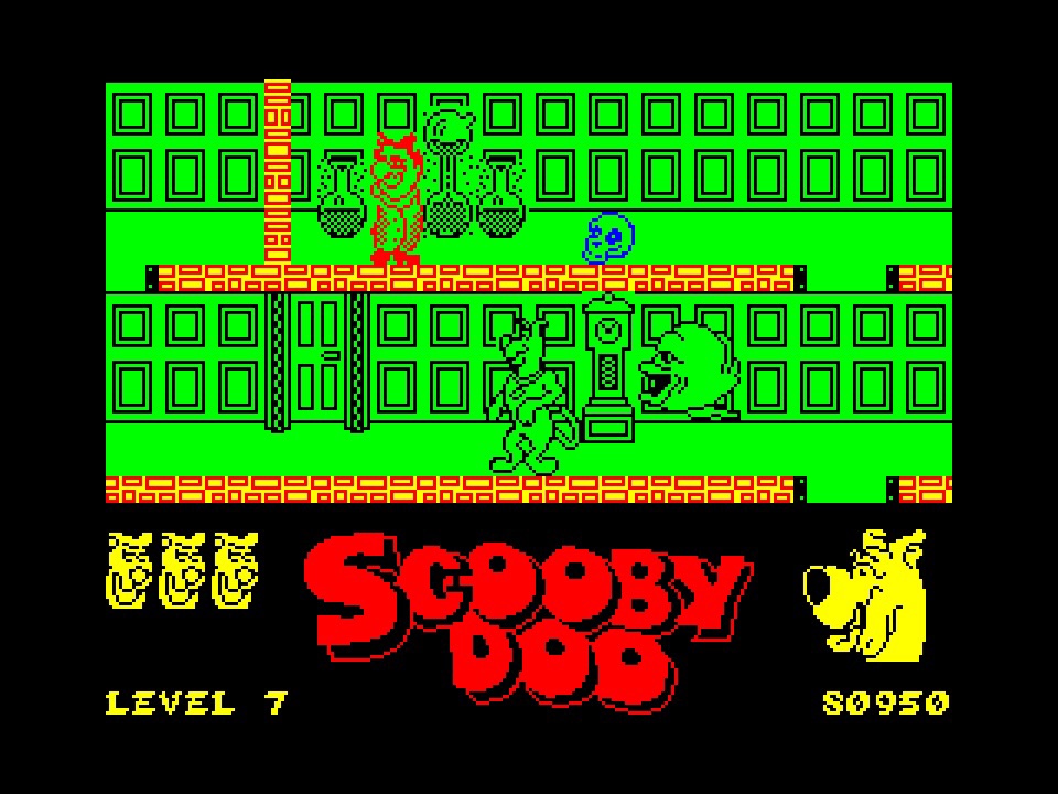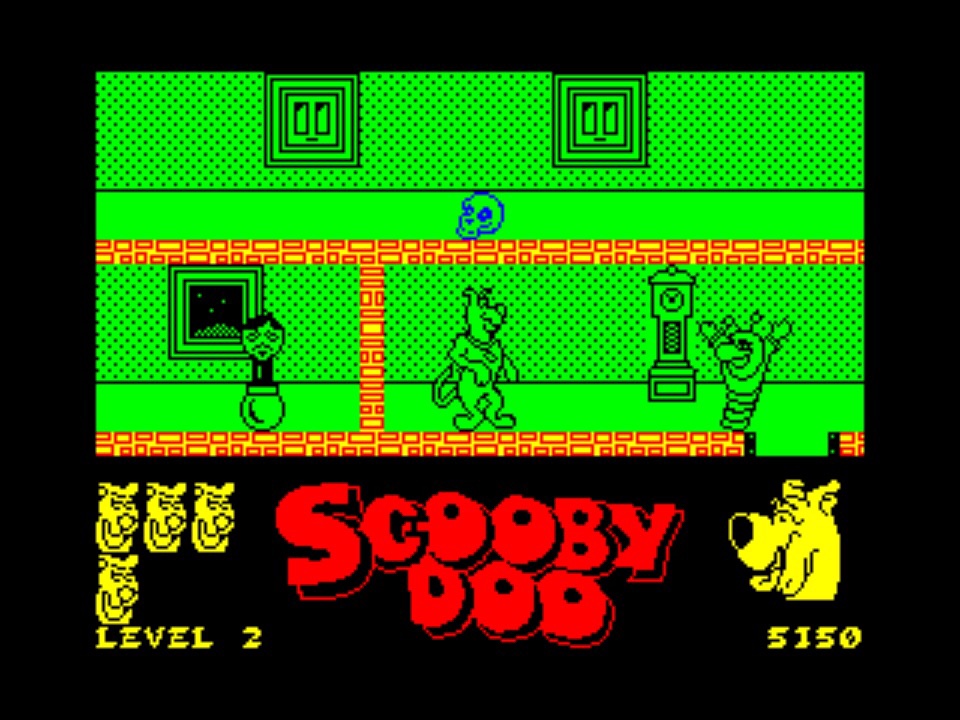 You don’t want to be watching numbers when you’re playing Scooby Doo though; even if it wasn’t a computer cartoon, this game was helping to usher in the absolute golden age of ZX Spectrum graphics, where bold and vibrant colours backed up big, detailed monochrome sprites. The character design is superb too, with Scooby and the gang instantly recognisable (even when they’re just heads in flasks!), and the animation perfectly captures the feel of the cartoon. Just turn the sound down a bit because there’s not a lot going on, but when you notice that grating punching noise combined with the sound of ghosts coming out of doors is as relentless as they are, you’ll never unhear it!
