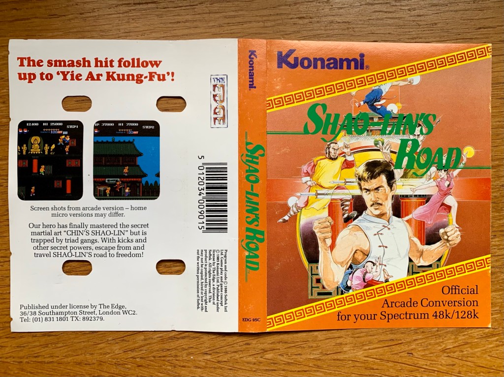 When we finally get our mitts on the home versions, the cassette inlay goes even further… “As our Hero Lee you have finally mastered the secret martial art, “Chin’s Shao-Lin”. You find yourself trapped in the temple by hoards of Triads. Using your kicking skills and magic powers you must fight off the Triads and get out of the temple and head for the road to freedom. At each step on your way on your road to freedom you will encounter more and more of the Triads, and at each stage you will discover one that is particularly skilful! Look out for flying kicks, breathing flame, and punches that come clear out of nowhere!”