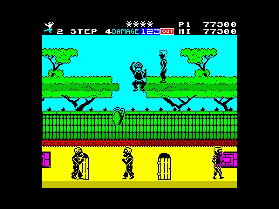 It took me a very long time after the fact to find out that the arcade version had been available on the original PlayStation for several decades, as part of the Konami Arcade Classics compilation, together with Yie Ar Kung Fu – which is fine too, but not a patch on its sequel! And that’s where I generally play it now, before jumping over to the Spectrum version just to see if I can finally decide which one is really the one that makes it number five in my all-time favourite games list. But it’s always both! Simple, addictive and just like being in an eighties martial arts movie!