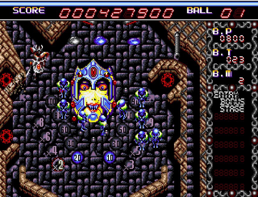 All that said, connoisseurs of nineties pinball games might have just felt the pang of familiarity that took me slightly longer to notice as I was dealing with my lower-right abdomen’s pangs of exploding! I got there eventually though, with a little help from some kind reviewers, who were starting me on an often obsessive journey, first making various stops on the PC-Engine, then ending by way of a couple more on the Sega Megadrive / Genesis. Our tale proper begins with Alien Crush, a game I’d actually played quite a lot of on PC-Engine at this point, but had no idea of its lineage or influence, and as obvious as it may seem now, didn’t immediately make the link…