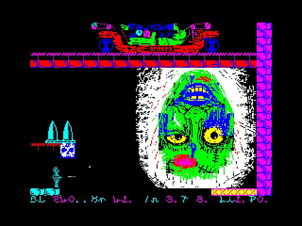 And all of that is why you need to go back and play Soft & Cuddly! It’s not about the mundane and slightly confusing gameplay (which as I’m playing and writing still bizarrely think feels like Manic Miner even though it’s absolutely nothing like it!), or the very functional sound effects or the early-eighties enemy or platform designs (sounds like Manic Miner!). It’s not even about the free bonus music track by H.E.X. on Side B, which is actually a very good piece of pre-romo post-punk… It’s about what surreal, grotesque (but almost completely colour clash-free) monstrosity you’ll come across next. And how big it will be!