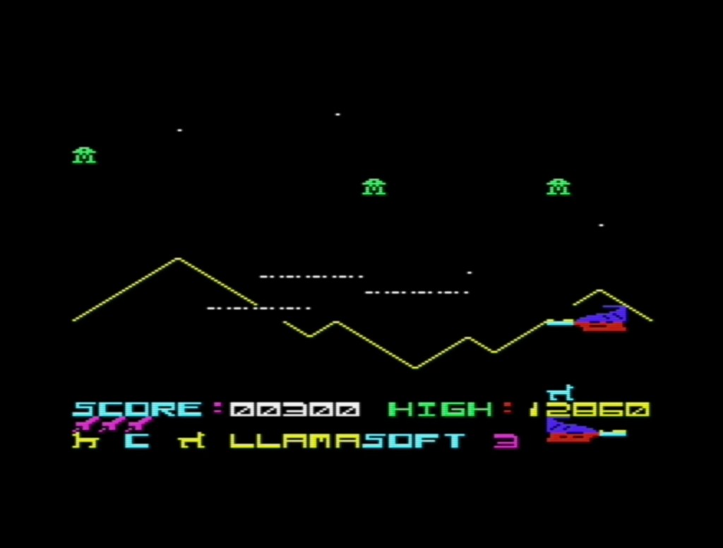 Where in Defender you are patrolling a left and right horizontally scrolling planet-scape in your spaceship trying to stop aliens kidnapping your stranded astronauts and turning them into mutants (but not mutant camels), in Andes Attack you’re patrolling the Andes mountains in your Ramjet fighter, where the aliens are after the llamas that are dotted around the surface and demand your protection. You either need to get the aliens before they get to the llamas, or if they manage to grab one, you need to shoot the alien before it gets it to the top of the screen where they will both turn into a nastier alien thing that’s going to hunt you down and ram you out of the sky.