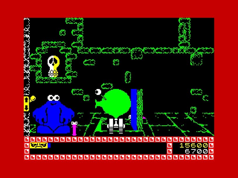 There’s not a huge amount going on sound-wise once you’re in the game, but before that there’s an occasionally bombastic rendition of the theme tune on the title screen! If only the Spectrum had even a bit of the Mega Drive’s finesse when it comes to drum sounds! Then it’s just a few blips and beeps as you open doors and pull levers, accompanied by a few more that act as audio highlights when Drutt is bouncing around, for example. It’s a little sparse, but less is often more when it comes to 48K Spectrum sound!