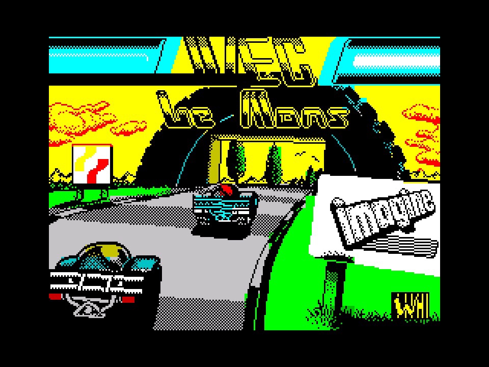 When you fire up the game for the first time, long before you think of reading the instructions or work out what’s being asked of you, there’s immediately two things going for WEC Le Mans on the Spectrum – it moves at pace and the car feels good to control. I didn’t really get much more than that out of the instructions when I did return to them – mostly marketing blurb telling you it’s the most realistic and addictive racing game yet, featuring four dramatic laps of the most gruelling and challenging car race in the world, with three checkpoints to pass on each one. Also some useful tips, like change the gear to go around bends, don’t oversteer, keep off the grass, don’t change gear too soon and always start in low gear. Everything you need to know to be successful in any racing game!