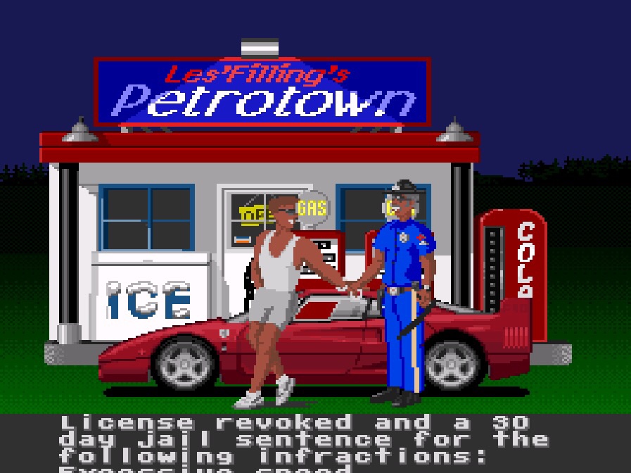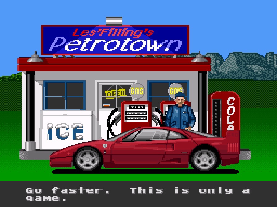 For a game that was never interesting to me, it turns out there’s some serious depth here, and it’s not over yet! Regardless of winning or losing, there’s good and bad endings too, depending on whether or not you’ve avoided police pursuits by sticking to the speed limit. Which I’m still not convinced is in the spirit of a racing game, but it’s all very early nineties anarchy, with a saucy 16-bit female cop suggestively informing you of the outcome, one way or another, when you reach the end of a stage.