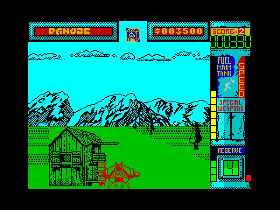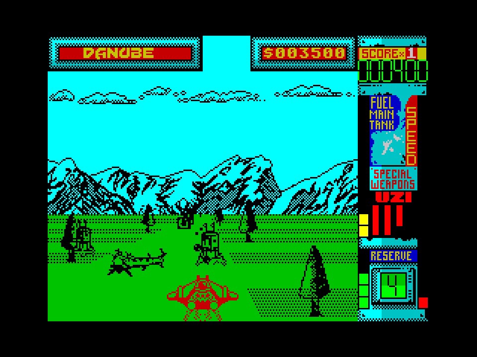 Apart from the fairly intrusive, but admittedly necessary multi-load, repetition is probably the biggest criticism I’d level at the game. I think the arcade game got away with it a bit, with big, bold sounds and fast, explosive graphics driving things along, but once you’ve seen all the colours and all the backgrounds, you are wondering do I keep trying to get better in the hope that things might change up, or will I get bored before that’s possible, or even have I seen it all now already? In terms of gameplay, you have experienced most of it by the time you get to the first bonus stage, The Hydradome, and Ziggy’s Weapon Shoppe whenever you come a cropper in there (or get to the end, though I don’t think I ever have), and then it’s a case of shooting more enemies and dodging more floating mischief. But maybe I’m being harsh, because doing all of that is quite a lot of fun!