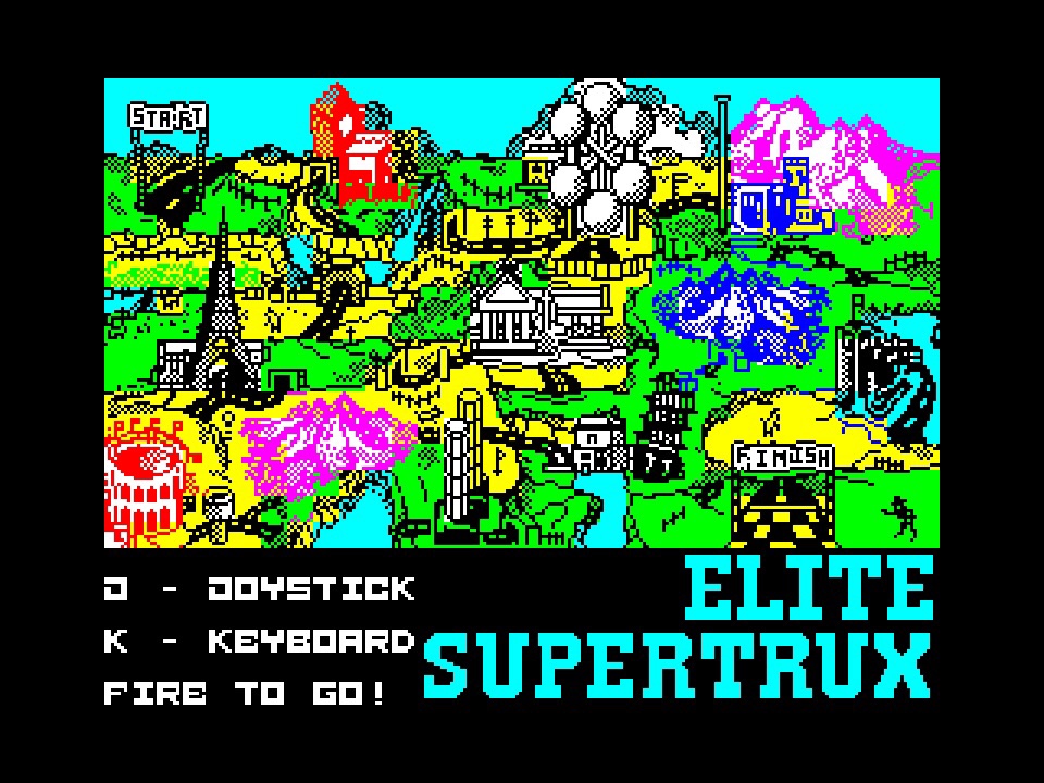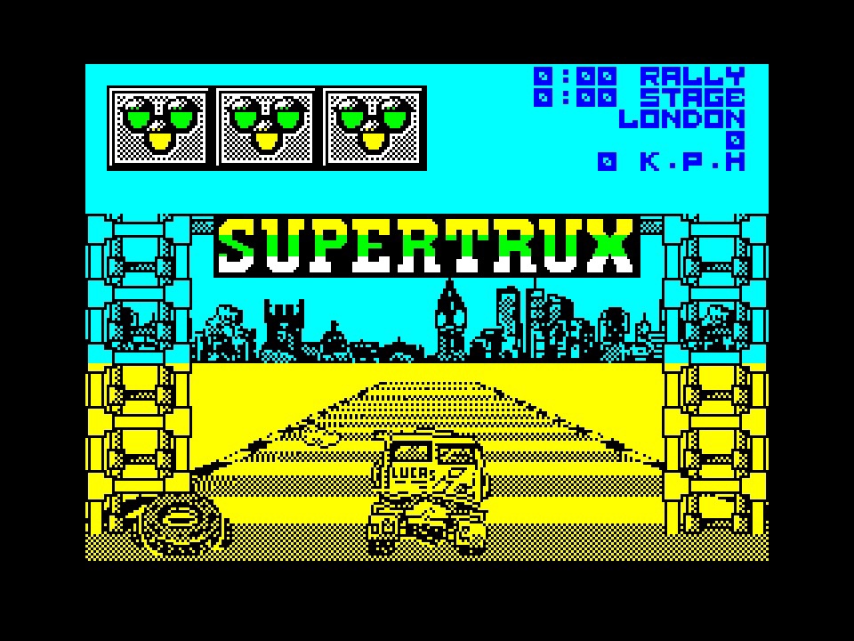 I’m too annoyed to go into what sound there is now, except to say the 128K version has a nice tune and alright engine sounds, but anything else has nothing at all. Apart from that, I’ll conclude by saying that the first level and a half is alright, but everything beyond that is completely let down by stupid timers and stupid obstacles all made even more stupid by stupid collision detection. And that’s a real shame because Supertrux is not only so nearly the best truck racing game on the Spectrum despite the lack of competition, but also one of its very best racing games full-stop.