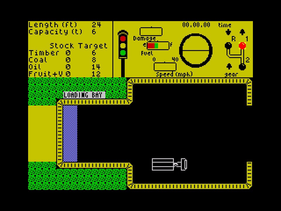Driving lorries, on the other hand, was something I had a bit of form with on the Spectrum! Back in 1985 we’d had Juggernaut, where you could live out your dreams of being “behind the wheel of a 42 foot, 23 ton juggernaut thundering through an urban landscape.” This was a pretty unique part arcade, part simulation game, using icons to drive for different trucking companies in a variety of towns around the country, collecting and delivering heavy goods. It was still a while before I got a Spectrum, but I do remember Computer & Video Games magazine reviewing it because it appeared right under my beloved Spy vs Spy! It got a very average score, but although they really didn’t rate the graphics, something about its black, green and yellow vector art style – as well as its very functional but informative user interface – struck a chord, and I eventually bought it very cheap from a market stall in Hitchin if I remember right.