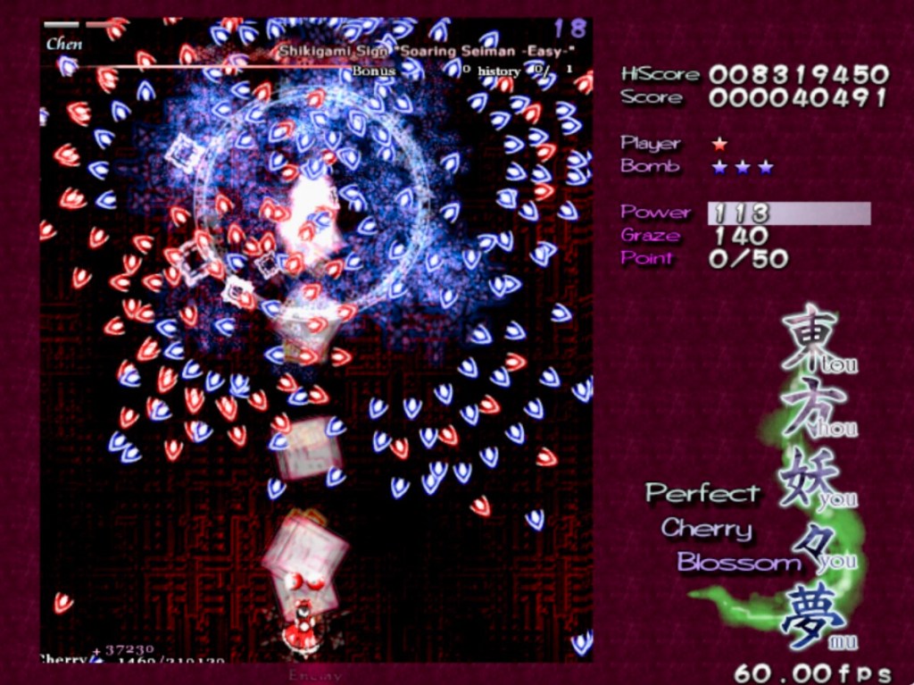 Another lesson, and I’ve been delving into some bullet-hell on PC with free labour of love Touhou 7: Perfect Cherry Blossom’s slowed down easy modes, as well as another one of those also recommended by Schmup Junkie, Blue Wish Resurrection, which is a bit more frantic but still gives you half a chance. There’s such a beauty in both of these games, mesmerising you into a terrifying but exhilarating second-by-second interplay. This bullet-hell thing has really caught hold of me!