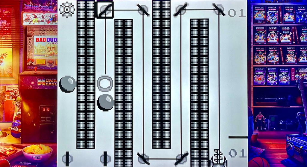 If we’re now in order of release then we’re starting with Brain Bender from 1991 on the original Nintendo Game Boy. It’s a puzzler, and you’re rotating your little mirrors left and right to bounce a laser beam around twelve levels of ten puzzles each to destroy gas spheres, shut down Electrobrains and destroy the enemy satellite. It’s all against the clock, which at the start is going to be your biggest challenge as you get to grips with which way to angle the laser using one button to rotate a mirror left and one to go right, with a crosshair to select the next one – it’s simple but that doesn’t mean it’s easy! Things get more fiendish as you go though, with multiple mirrors at play at once just to get the angle right to hit an object, and where a single mistake can mean you’ll never finish the level, which forces a restart at the cost of a load of points. Trouble is, you’re never likely to progress that far because the timer is way too aggressive, even on the first level on easy mode! Which is a shame because there’s a decent concept in here, and you can even feel an element of addictiveness emerging as you just about clear the early puzzles. Unfortunately, that’s not the only problem though – it wasn’t really a looker to begin with, but even more than those Lynx games we talked about earlier, while it might work on the Evercade handheld it just wasn’t designed to be played on the biggest, highest definition TV in your house! I get that they were trying to mix things up a bit with this, but why not include the Amiga (or pretty much any other 8- or 16-bit platform) version of Deflektor instead, which is pretty much the same game?