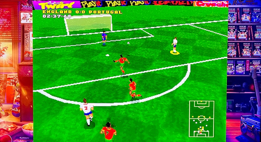 It’s time to come back to one of my fantasy choices, except now it’s here in the flesh and it’s Actua Soccer, which I played endlessly when it came out on the PlayStation back in 1995! This really is vintage Playstation too, boasting “3D motion capture from top international footballers,” (or at least any that played for Sheffield Wednesday at the time – true!) “commentary from the legendary Barry Davies and TV-style presentation,” Most of which some might argue hasn’t aged particularly well! Not me though – I’m still looking at it through my wonder-filled 1995 eyes, and it took mere seconds for my hands to remember the simple controls (pass / shoot / speed burst and tackle / slide tackle / switch player) and we were away scoring goals. Admittedly it did take a bit longer for my brain to process the non-stop “TV-style” movement and rotation of the camera, not to mention the questionable non-player AI and occasionally mysterious collision detection, but all the same, this one is still loads of fun from when that kind of thing was still allowed in a football game!
