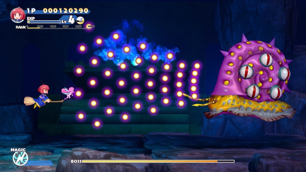 Not speaking Japanese, I have absolutely no idea what’s going on with the voice acting, but all the same, that’s probably my favourite part of the audio experience here. You don’t need a translation for passion, and as slick as they look, this really makes the cutscenes pop. The non-stop quips between Cotton and Silk do the same as you play too, offering a unique cacophony on top of the chaos of the magical violence happening all over the screen! There’s a bombastic soundtrack moving everything along too, and while I didn’t go back to check my facts here, it’s sounding like Cotton’s greatest hits re-recorded by a J-pop techno electronic orchestra of some kind! Whatever it is, I can confirm the main title theme has never sounded better!