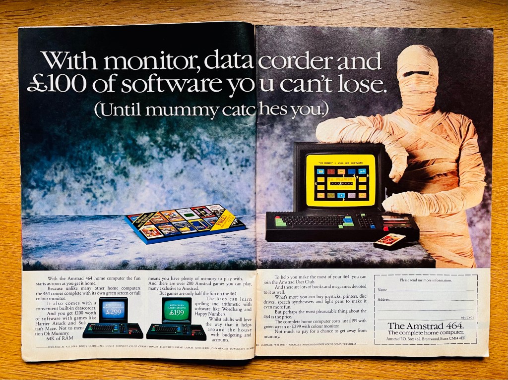 At this point we can now conclude that at least half of Soft 888’s games were stinkers in one way or another, but if they weren’t then I suppose that Punchy’s inclusion wouldn’t be that horrendous, if you’re some kind of sado-masochist, and Disco Dan turned out to be not bad at all, which just leaves us with Oh Mummy! I believe this was originally developed by Gem Software and published by Amsoft for the Amstrad CPC in 1984, and it was part of the game bundles you’d get with that too, hence the advert we talked about at the beginning. As well as the Spectrum, it also appeared on the MSX and the somewhat obscure Tatung Einstein, a UK-developed Taiwanese beast of a machine, mainly aimed at small businesses but, thanks to its reliability and big memory, it also became a bit of a development favourite for companies programming and porting games for the more popular home computers!