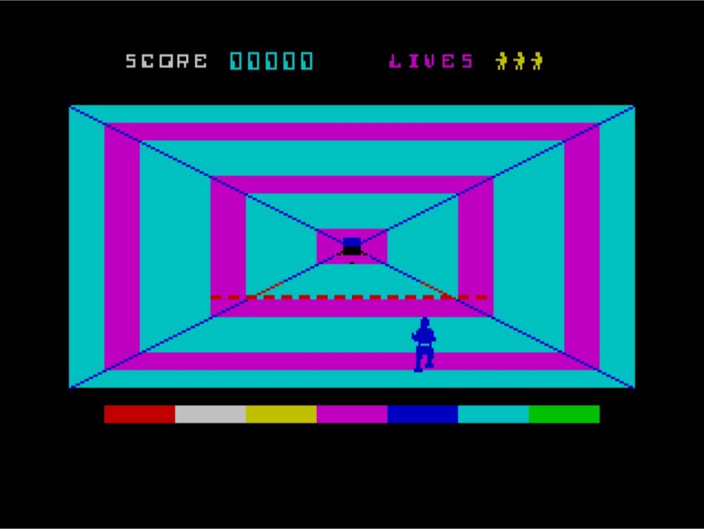 My ambition for this list isn’t just to slate everything in turn, but I’m genuinely hoping to find a hidden gem I’d missed before that we can have a proper look at here later on, so to that end I’m going with Disco Dan now, because while I wasn’t familiar with what it was at the time, I think I knew the name so it must have had something about it! Right? Well, it makes a good second first impression, with the most ZX Spectrum tune you can possibly imagine playing on the title screen – think that Daley Thompson’s Decathlon sound and you’re somewhere near! Disco Dan came from 1984, and in “this new 3D machine code game,” poor Dan Dan The Atomiser Man has to run down some psychedelic 3D tunnels, avoiding vagrant particles and jumping over laser things, then negotiate a screen full of atomic fuel rods that need to have their radiation levels decreased by jumping between them in order and avoiding more vagrant particles. I reckon this would have been pretty impressive in 1984, which is probably why the name stuck with me, and I reckon it’s still pretty impressive now too! And I know precisely what I did when I first played it because I’d have been happy jumping about in tunnels, but once I reached the end there’s no way I was going to try and work out numbered fuel rod puzzles at the back end of 1986. Nowadays though, this is really good and I think coming here next wasn’t a bad shout!
