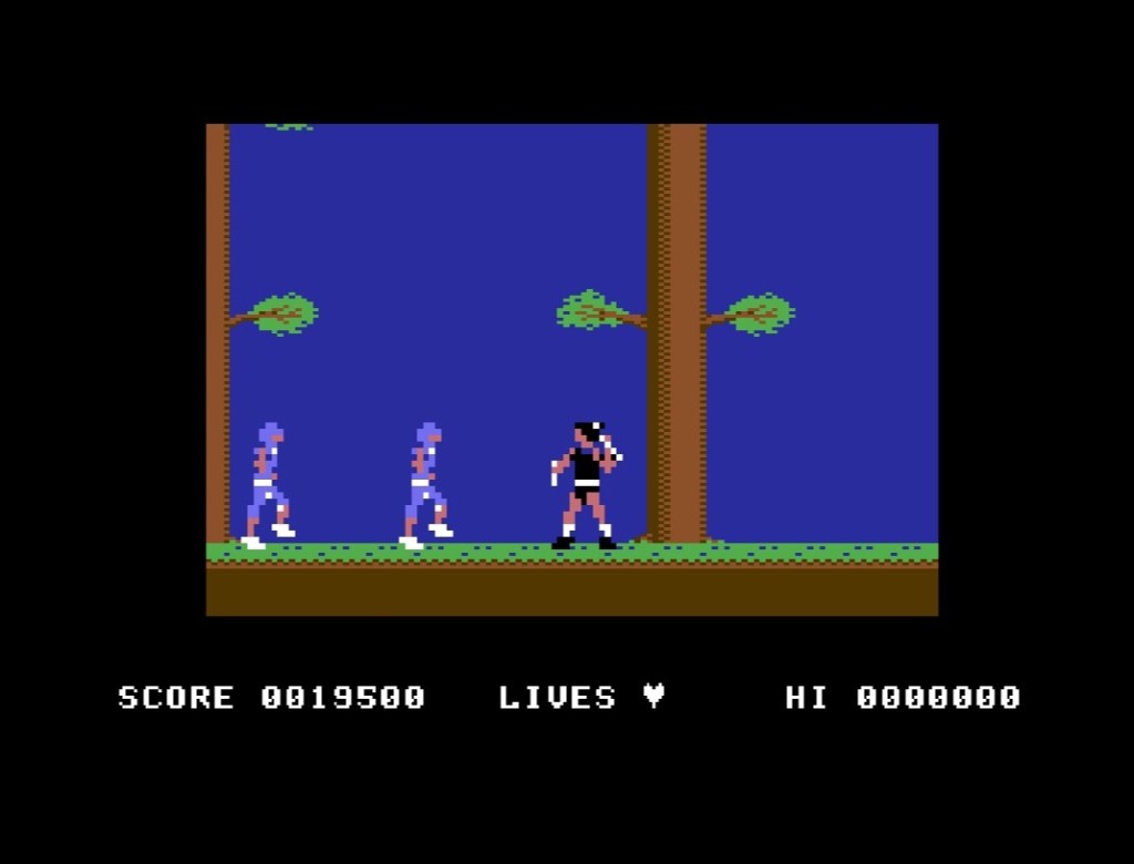 When we were doing the same for Shinobi here last week, I promised a whistle-stop tour of The Legend of Kage’s home conversions, so here goes! We’re talking side-scrolling hack and slash Japanese fantasy adventure from Taito in 1985. Beautiful game, and beautiful (albeit slightly too easy) ZX Spectrum port, which I also finished last week and is how we ended up here! Anyway, in the order I played them, Amstrad CPC is very sparse – one screen, one tree, tiny sprites, but what it lacks in any graphical fidelity it more than makes up for with absolutely brutal difficulty backed by some very nice music. Brown ninjas? It can only be the Commodore 64 version next! Difficulty is toned down like the Spectrum’s, but it’s way slower and has some trademark blocky sprites with some terrible animation; still lots of fun though, and there’s a few nice tunes tucked away in there too!