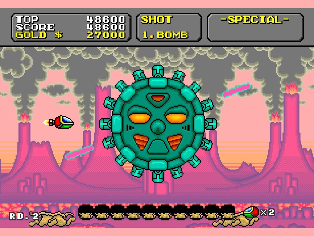 Together with Road Rash II, also on the Sega Mega Drive, Super Fantasy Zone is my definition of gaming comfort food. Whenever there’s football on the telly and I’ve got nothing better to do at half-time, it’s one of those two for fifteen minutes. And there’s the problem, because you don’t get any good at any shoot ‘em up fifteen minutes at a time, even when they look and sound as adorable as this one does! I’ll happily repeat the first stage a few times though, or even have a decent go at the stage two boss if I get a prolonged session on the go like I did this week! There are few shooters that feel as good as this to play, including Defender – which I also had a few goes on this week – from which this more or less evolved, though it’s a toss-up which one sounds better – one of gaming”s most iconic sound effects versus one of the Mega Drive’s finest soundtracks? Your choice!
