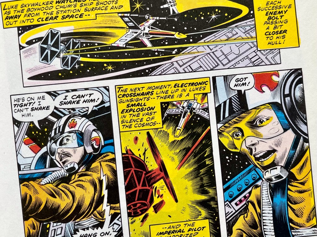 How did we end up there… All roads lead to Caroline Munro circa 1972, I guess! And I’m now struggling to re-focus on Star Wars, but it’s safe to say that despite being a fan of the latest instalments, and also not a fan of that obnoxious baby Yoda thing, I’m probably considered a bit of a Star Wars nerd! As I write I’m still surrounded by figures and vehicles from the late seventies and early eighties, as well as a few more recent “collector’s pieces” and Lego sets that might well have cost a small fortune but they’ll be worth even more in a few years, as I keep telling her indoors! Then there’s the original comics, and the annuals and the novels and the non-fiction books, and the videos and DVD’s and Blu-rays, and the special Silver Screen edition of the original that no one is supposed to be able to see anymore! I was five when that came out, and although by 1984 the little tip on Darth Vader’s extendable light sabre had long-since snapped off, and Yoda had lost the snake that was supposed to be draped around his neck (although I still hold out hope it will turn up in a box someday), I’ll still never forget the feeling of clambering into that arcade machine – with almost no imagination required, you were really in a real X-Wing and you were really slap-bang in the middle of the climax of the movie, and it was all just science fiction come to life!