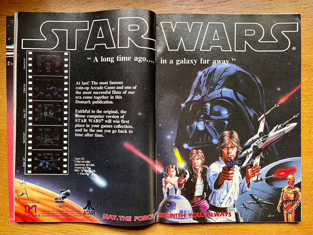 I was recently asked four completely separate questions about arcade games that all had the same answer… Star Wars! The first was favourite memory of playing an arcade game, and I don’t think anything has ever matched the exhilaration of sitting down in that cockpit cabinet for the first time, which would have been at a Stanley Thurston’s travelling funfair in Bedford of all places, probably around 1984 by the time it got there for its twice-yearly visits. The next question was the arcade cabinet you’d buy if money was no object, and from what I can see currently we’re looking around £16,000 for an original; I guess it’s pretty high maintenance by this point too, so I’ll maybe stick with the literal Pandora’s Box of replica stand-up cabinets I’ve just got dangerously interested in as I write this! Third question was favourite movie tie-in game, and that one actually took a bit more thought than the first two – the other main contenders would be a more recent Star Wars game, Battlefront by DICE in 2015 on PlayStation 4, as well as Ghostbusters on Commodore 64 and Robocop’s arcade and Atari ST games. Then there’s also Alien on Atari 2600 (the greatest Pac-Man of them all!), and Indiana Jones and the Temple of Doom on ZX Spectrum, and you’ve got Cobra and Nosferatu the Vampyre on there… In reality there wasn’t that much more thought needed though! Finally, question four was most impressive arcade conversion, and while the initial answer was the Star Wars port on Atari ST, in retrospect I think I meant Operation Wolf on ZX Spectrum, so before I ruin the flow here, let’s talk Star Wars!