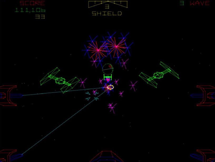 Okay, enough of that. We really should probably mention the game itself at this point! I’ve actually given far more thought than is probably necessary to a description I read recently that described Star Wars as a rail-shooter. I guess it is, in that you’re shooting stuff but have no control over your path, but I’ve really never thought of it that way – normally I’d associate something like House of the Dead or Time Crisis or Virtua Cop with that moniker. But then I got to thinking that by the same logic, Operation Wolf and Space Harrier and After Burner that I’ve thought of for decades as just 3D shooters also then fall into that bracket. Same for other favourites like Battle Shark and Panorama Cotton. There is possibly some nuance there, in that in some you’re moving a character or vehicle around the screen while it automatically shoots at stuff, where in others you’re moving a crosshair; and let’s not get started on light-guns because none of this is especially important! Just interesting that a throwaway label can really colour and recolour the way you think about things, or even make you think about things you hadn’t thought about before… Possibly for good reason! Right, Star Wars, maybe a 3D rail-shooter designed by Mike Hally and launched into the arcades by the free-falling juggernaut that was Atari in 1983. Actually, it didn’t do too badly for them, and was their top-selling arcade release that year, shifting almost thirteen thousand units.