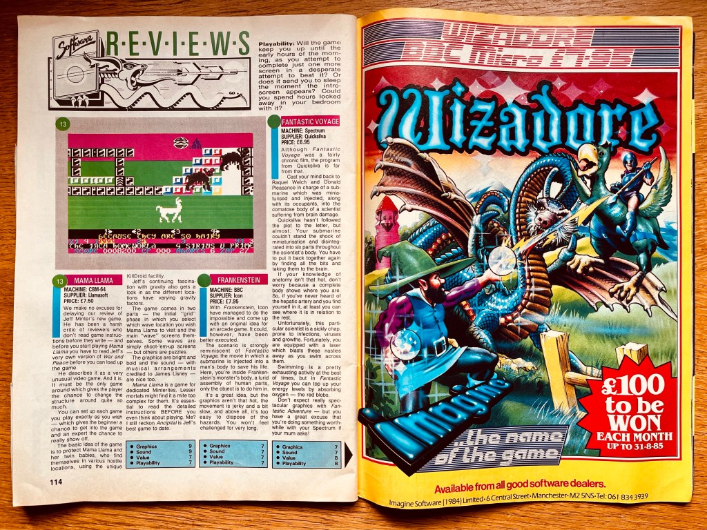 Finally, not a game but an old gaming thing! I recently realised I was missing the June 1985 issue of Computer & Video Games magazine, and thankfully with a bit of patience I was eventually able to pick up a copy in excellent condition for a not outrageous price on eBay. Nice issue too… Airwolf, Roland’s Rat Race, Cauldron and Wizadore adverts that would have ended up cut out and on my bedroom wall had I bought it at the time. Game of the Month is Starion, a wire frame 3D space adventure, and there’s also reviews for Dambusters, Spitfire 40, Entombed, Mama Llama, Ice Palace and all sorts more. Big features on the upcoming Frankie Goes to Hollywood and Minder games too, and loads of type-in listings and that regular nerdy adventure games bit too. Good read!