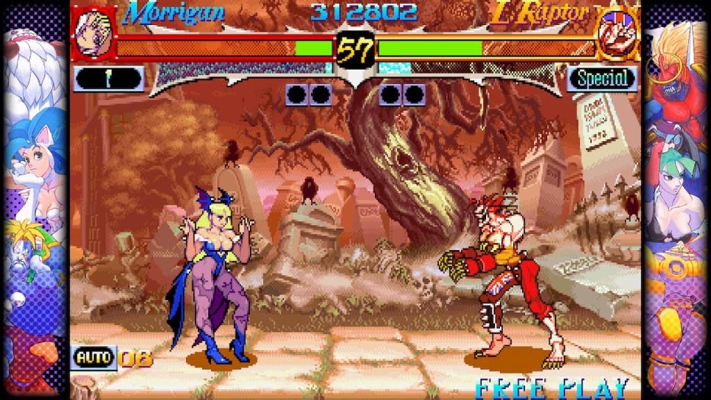 Okay, regular viewers will be pleased to hear that I’ve finally (marginally) expanded my gothic horror fighter horizons and taken my Morrigan to Night Warriors: Darkstalkers Revenge on the Capcom Fighting Collection on Nintendo Switch! This one’s the second in the series, adding an optional but welcome auto-block, chain combos and new stackable Super Moves which offer a new layer of strategy about how and when to use them. There’s also two new characters as well as two playable bosses from the first game, but now I’m actually getting to grips with Morrigan rather than just leering at her, I’ll come back to those later. Apart from that, the biggest change is the smoothness of everything, from the absolutely stunning animation to the combat itself. This is a really special game!