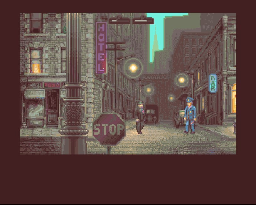 Back to the others, we’ve got two very average running (or plodding) and gunning arcade adventures, although the first of them, The Godfather, is also one of the best looking games I’ve seen in my limited Amiga experience so far! The first section in particular offers an absolutely stunning, almost painterly representation of primetime gangland New York, with a ton of detail and atmosphere. The gameplay itself is like a boring take on Robocop though, occasionally switching to a first-person crosshair view. Worth experiencing for the art style though. While Flash Gordon cartoon spin-off Defenders of the Earth doesn’t quite meet those graphical highs, it does have a really colourful suitably cartoon style and it’s all a bit more exciting to play (but not that much!) as you explore Ming’s fortress shooting robots and stuff! I came across it reading some old magazine reviews, but by coincidence my friend Nick Jenkin recently reviewed the Spectrum version, and I’m pretty sure the Amiga version won’t be far behind if you want to see it in action! (Update from the future – it’s here).