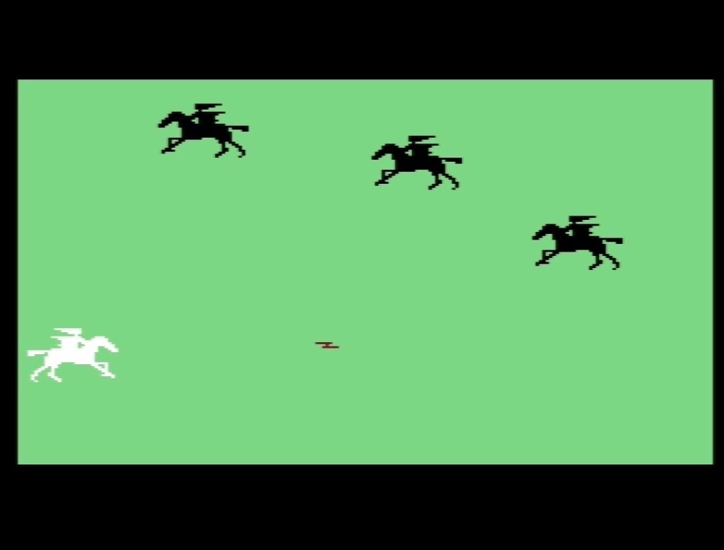 I used to get a regular Commodore VIC-20 mail order software catalogue in the post. I’m not sure where from, or if I ever bought anything from it, and I’m also not sure the games in it ever changed much either, but I’d always look forward to it arriving and I’d always look out longingly for its blurry screenshot of Shadowfax! These were some serious graphics all the same though, hyped up to photo-realism by the accompanying description of Postern’s 1982 Lord of the Rings horsey shoot ‘em up! The horse animation is very impressive though, based on those famous early motion-picture animation galloping horse photos by Eadweard Muybridge in the 1800s. The Horse in Motion, in fact! Anyway, Shadowfax had you playing as Gandalf on his horse, Shadowfax, shooting magic at oncoming Nazgul, although if there’d been as many ring wraiths on the prowl in the book as there was here then Frodo wouldn’t have got very far! Anyway, despite having the best horse animation to grace any game until Kane trotted onto the Commodore 64, there’s really not a lot to it, and in retrospect I was better off saving my money for the likes of Gridrunner and Jetpac!