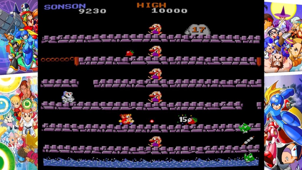 I was really excited about Capcom Arcade 2nd Stadium arriving last week, but all that crossover with the recent Capcom Fighting Collection (which we’ll come back to again later) ended up putting me off the £30 or whatever bundle for all of the games, and instead I spent ages poring through everything that’s on there to decide on nine or less that would justify buying them individually. Which I thoroughly enjoyed doing, but in the end I only had Saturday Night Slam Masters on my wish-list, and I still haven’t bought that yet either! So much for all that excitement, but at least the pack-in freebie Sonson is alright! It’s also way more than alright, with you playing a monkey boy (it’s true!) auto-running up and down six mostly continuous platforms, collecting power-ups and bonuses and shooting formations of enemies from the front and behind. Classic 1984, and I’ve also just learnt that there was a PC-Engine sequel, Sonson II, so we’ll have a look at that here soon too!
