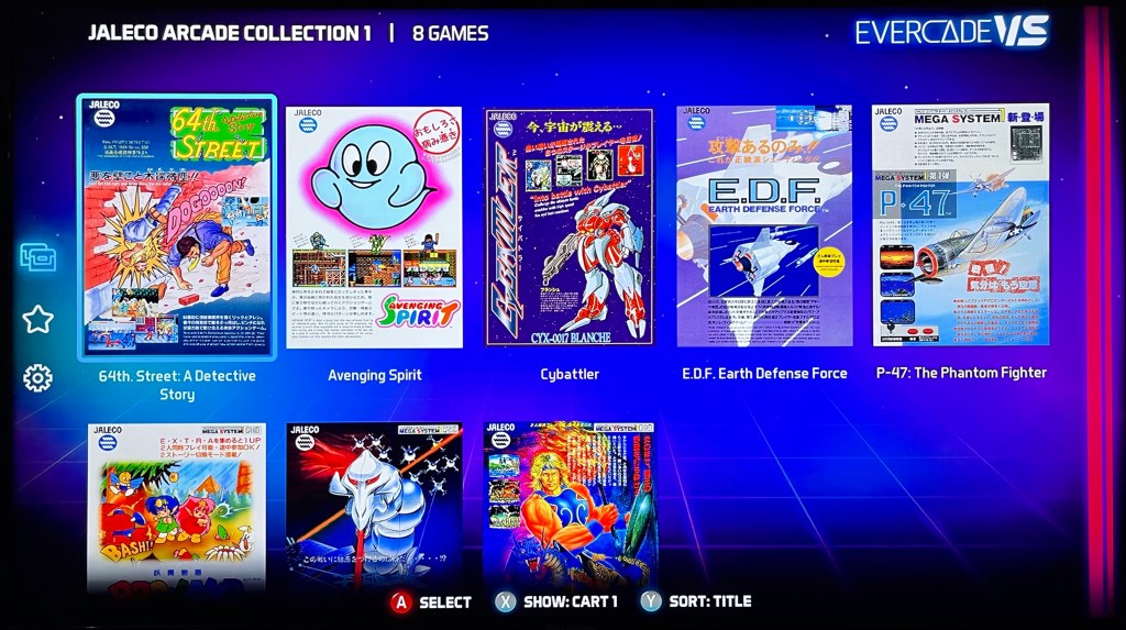 The brand new Jaleco Arcade 1 cartridge was released at the end of July 2022 alongside Gaelco Arcade 2 (which we also just reviewed here), and spans the company’s eighties and nineties heyday, including our cute platformer Rod Land and horizontal shoot ‘em up P-47: The Phantom Fighter, then more of the same with Saint Dragon and E.D.F. Earth Defense Force, and a vertical shooter in Cybattler, beat ‘em up 64th Street: A Detective Story, and a couple more action platformers, Avenging Spirit and The Astyanax. Of the rest, I’ve played a bit of the SNES take on E.D.F. and known about Saint Dragon since it first came out but just never fancied it. The rest are all new to me! Before we get going, as I always disclose when I’ve been given a review copy of a game, I’m also going to disclose that I bought both of these new cartridges with my own money, just so you know.