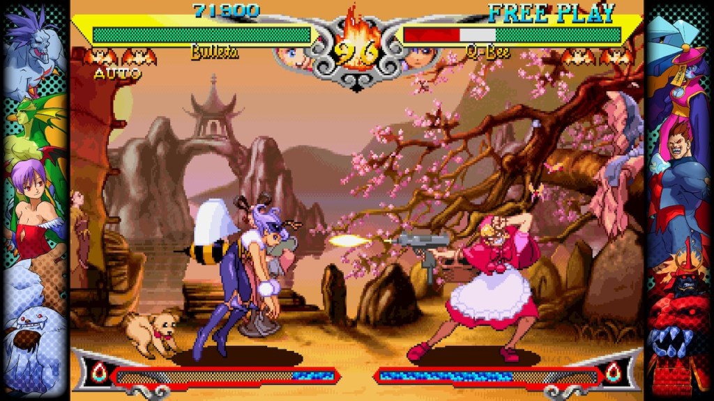As I’m never likely to cover it in more detail anywhere else, let’s have a really quick look at what else is on this thing… For Darkstalkers, we’ve got Darkstalkers: The Night Warriors, Night Warriors: Darkstalkers’ Revenge, Vampire Savior: The Lord of Vampire, Vampire Hunter 2: Darkstalkers’ Revenge and Vampire Savior 2: The Lord of Vampire. We’ll come back to most of those in a bit, but apart from Darkstalkers, we’ve also got a couple of Pocket Fighter games in Super Puzzle Fighter II Turbo and Super Gem Fighter Mini Mix, plus Hyper Street Fighter II: The Anniversary Edition, Cyberbots: Full Metal Madness and Red Earth, which I think is the first time that’s ever been officially released anywhere outside of the arcades. It’s a really well presented compilation, with both Japanese and English versions (where available) immediately accessible from a clean carousel menu, single player and excellent online modes, copious display settings, modern conveniences like quick saves, training modes and a museum with a ton of concept and development artwork, plus all the music. I won’t spend too much time on all of the games here as I’ve not really spent too much time playing all of them so far, but apart from the Darkstalkers titles, I have had a great time exploring the high fantasy combat of Red Earth, and especially the only non-fighter here, Puyo-style puzzler of sorts Super Puzzle Fighter II Turbo. No hurry to get to grips with the rest though – it’s a fantastic compilation that’s going to be around these parts for a long time!