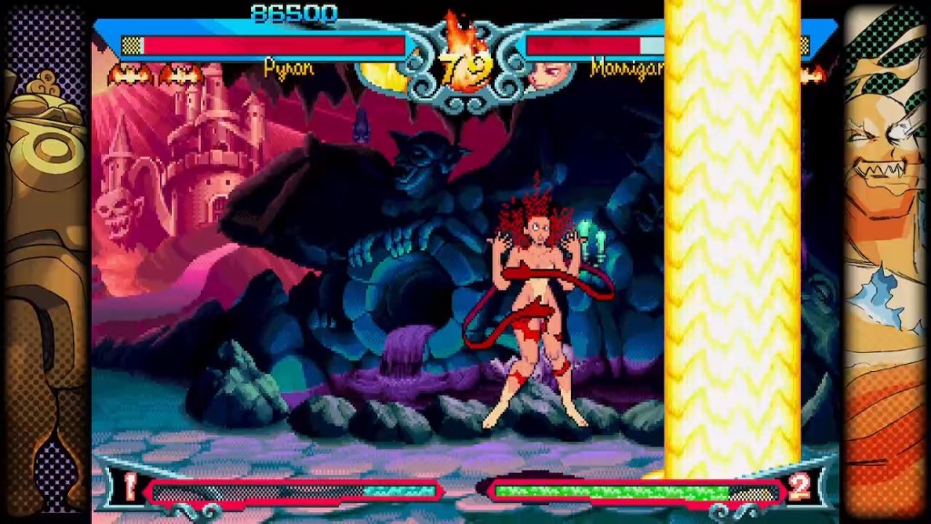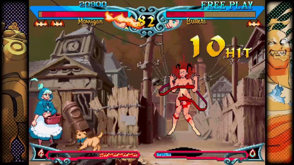 These few updates were only meant to be a short sentence on each, so a quick and dirty last one now. Also quite literally. Sorry in advance! As regular listeners will know, I’ve been playing loads of the Darkstalkers games on the Capcom Fighting Collection on Switch, and in Vampire Savior 2: The Lord of Vampire in particular, I’ve noticed my favourite part-vampire Morrigan losing her clothes quite regularly, and there’s even a couple of variants. It all happens in a flash, but just in the interest of completeness I’ve painstakingly captured some screenshots from some videos and shared some examples here!