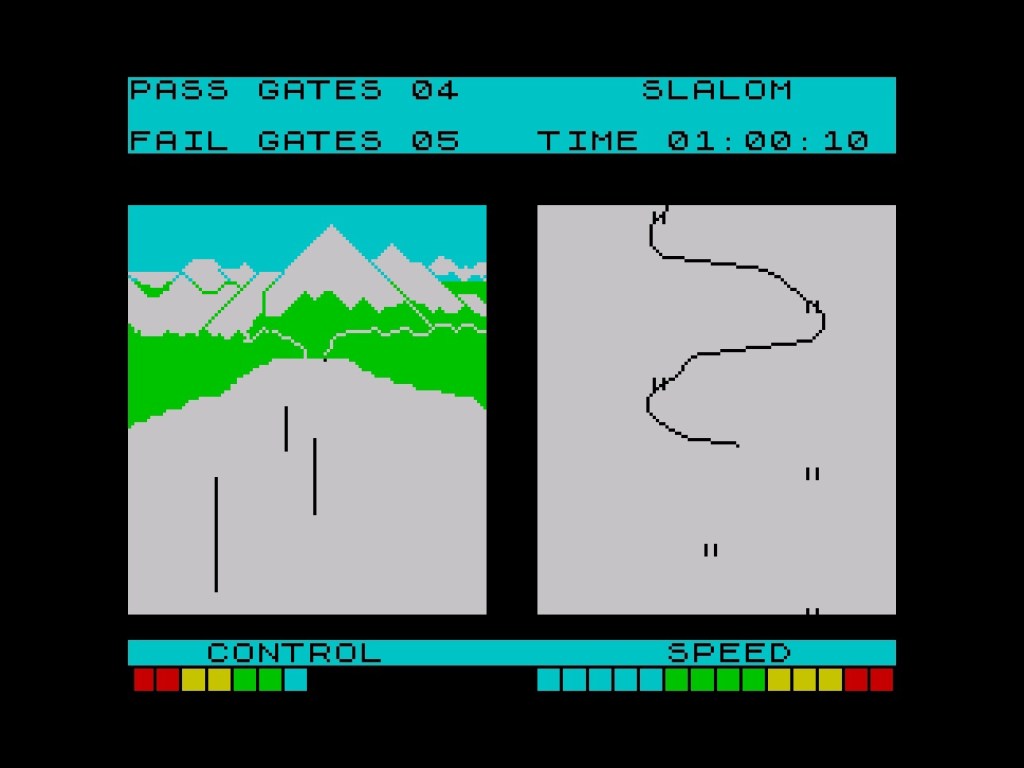 Phew, I think we got away with that slightly unplanned line of questioning, so let’s head back to Winter Sports! I have to admit I’d totally forgotten this game even existed until I was covering my top ten ZX Spectrum loading screens not that long ago, when it got into my original shortlist of about twenty-five. It took writing about Combat School here even less long ago for me to rise to its bait though, when talk of Track & Field and Hyper Sports led to talk of Daley Thompson’s Decathlon and Winter Games, and there it was looking back out at me from its competitor’s very box, and I couldn’t resist giving it another spin! And no, it’s not Winter Games, but in some ways it’s more…