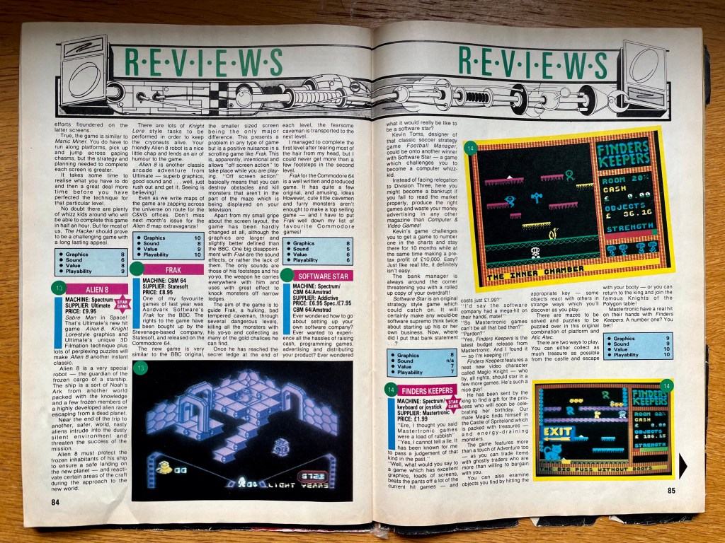 A bunch of type-in game listings next, including the second part of Starship Victory on VIC-20, and I remember having to borrow a friend’s copy of the previous month’s issue so I could type the whole thing in. Worthwhile take on the old Star Trek games too! Then more reviews, including some really big-hitters on the Spectrum… Alien 8, Finders Keepers, Brian Bloodaxe and Technician Ted, all in the space of three pages! The reviews ended with another big-hitter on the CPC, Sorcery, another witchy game I should love but has just never clicked! We’ll skip the boring adventure game stuff (although it did get a look in when we covered Dick Turpin on the Spectrum if you’re interested) and finish off with Arcade Action, featuring Kung-Fu Master, which at the time I had no idea would soon become an all-time favourite!